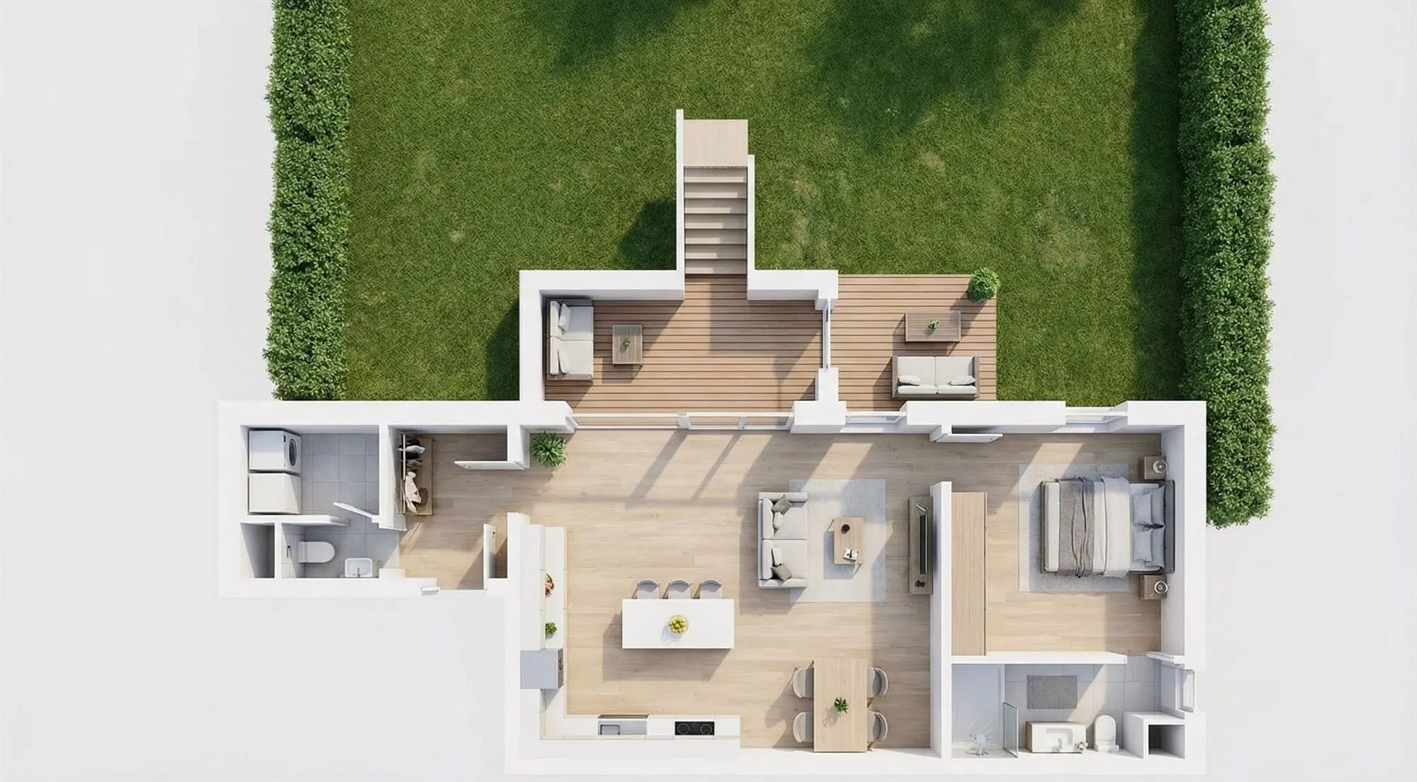 L’appartement dispose également d’une buanderie pratique, d’une toilette séparée, ainsi que d'une chambre avec sa salle de bain privative.