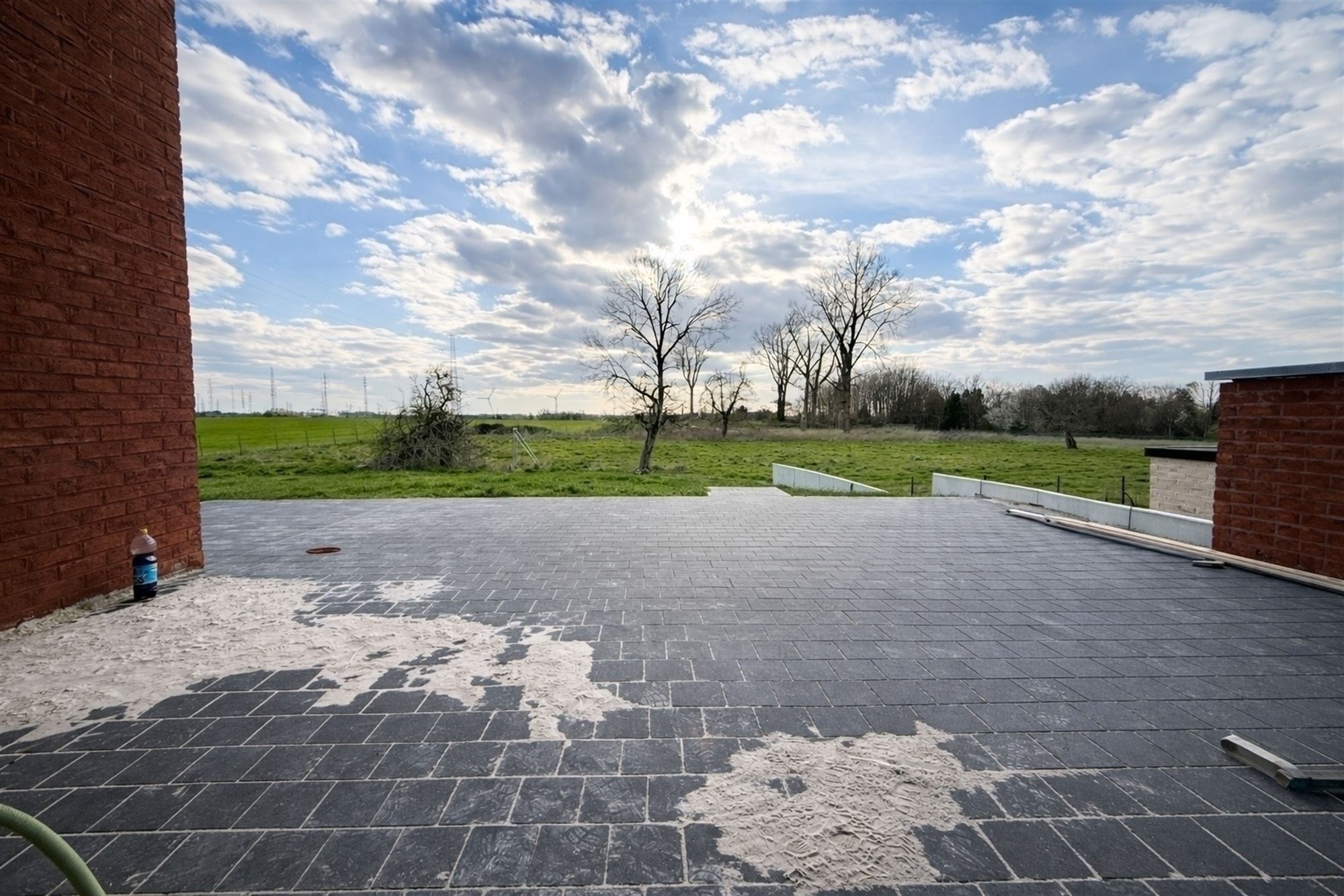 À l’extérieur, vous profiterez d’une agréable terrasse avec une vue dégagée sur les champs, offrant un cadre paisible.