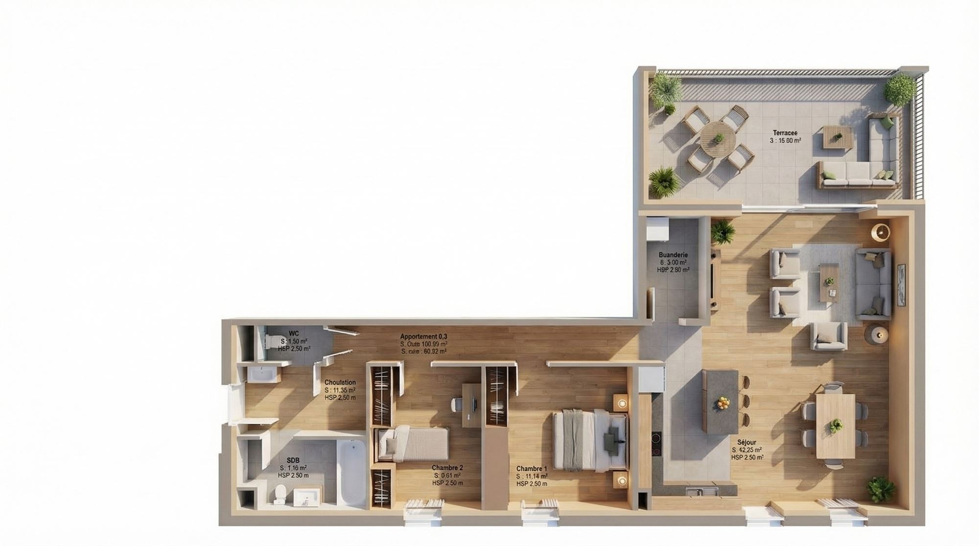 - Surface habitable 101 m²
